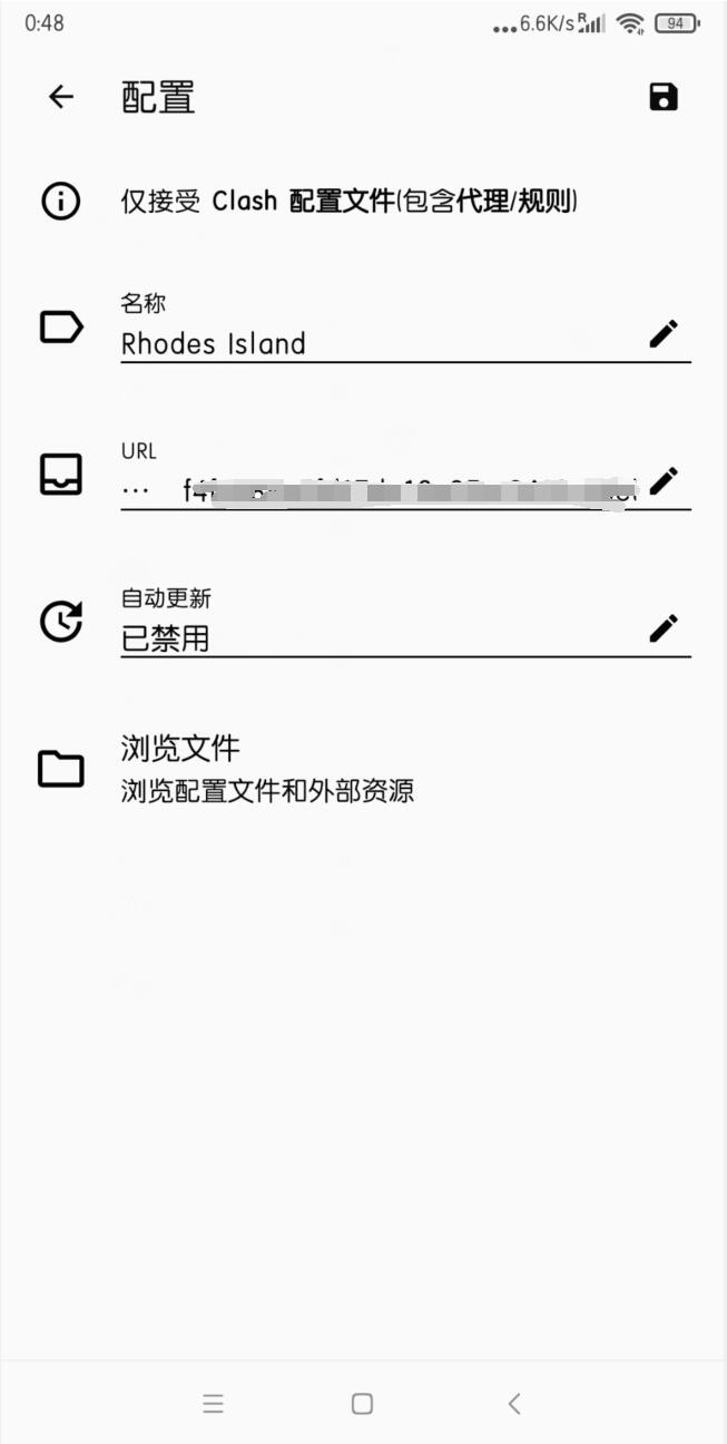 这时会弹出clash导入配置界面,我们右上角保存。