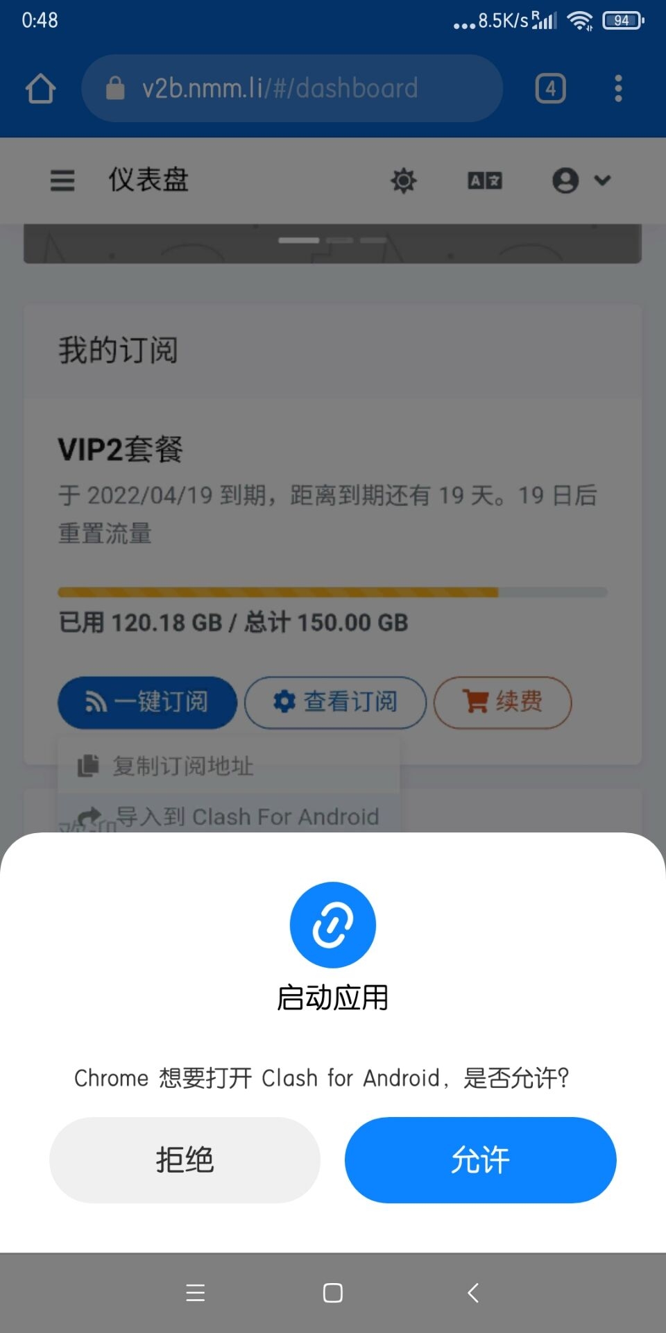 此时会弹出提示打开clash,我们选择允许